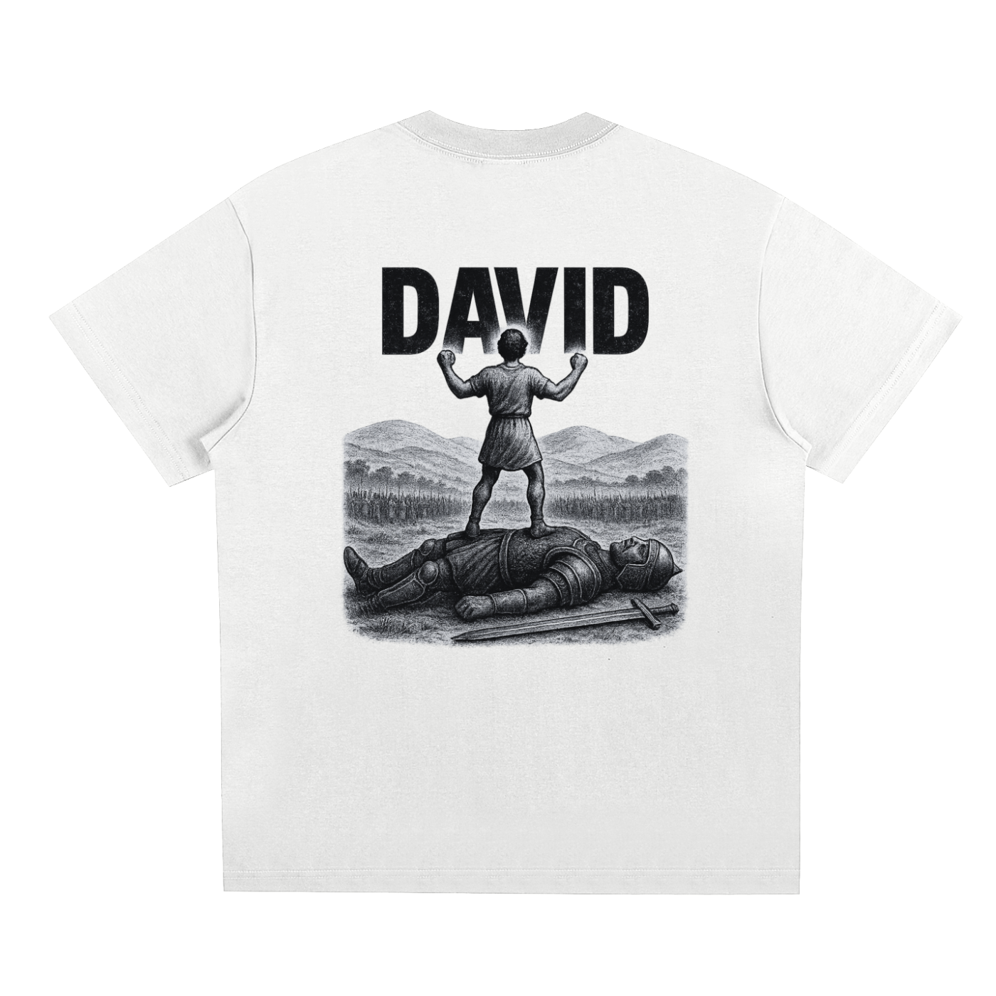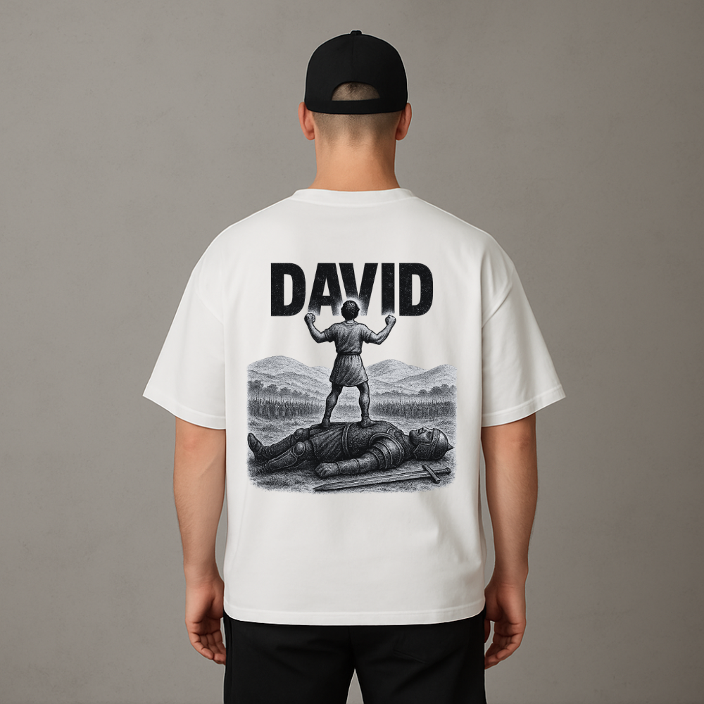 This design captures the aftermath of a miracle — David conquering Goliath with nothing but a sling, a stone, and the power of God. A visual reminder that victory doesn’t come from strength, but from obedience. Made for those who don’t just believe in God’s power, but walk in it.